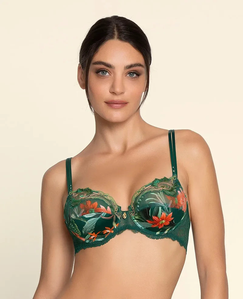 Tropique En Fleurs captures the beauty of tropical florals through delicate French embroidery and airy tulle. This refined lingerie collection blends couture-inspired detailing with everyday comfort, delivering support, softness and a touch of exotic elegance.