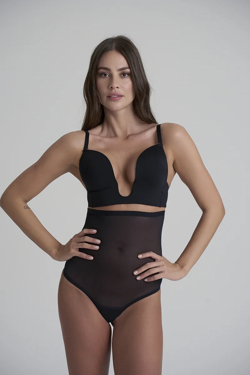 ByeBra - Forming Tulle Shapewear Mid Support Forming Tulle High Waist Thong Black