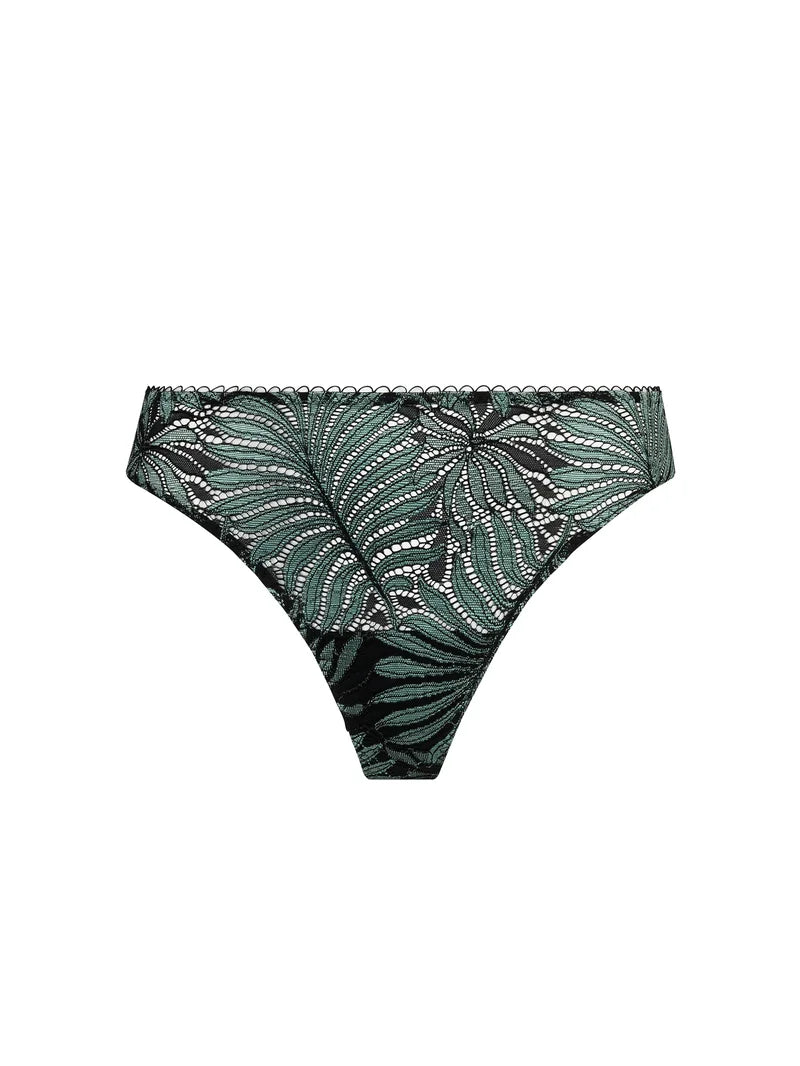 A minimal thong in soft mesh for an invisible finish and a hint of jungle chic.