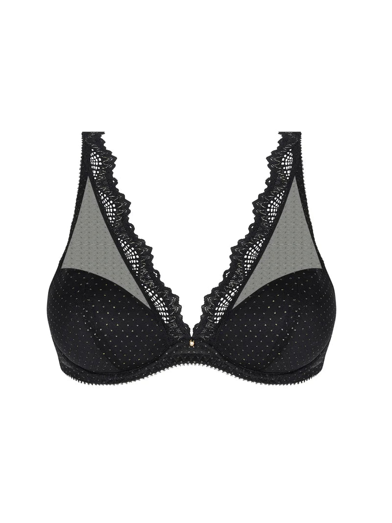 A lightly padded, shimmer-lace bra that gives subtle lift and a smooth outline.