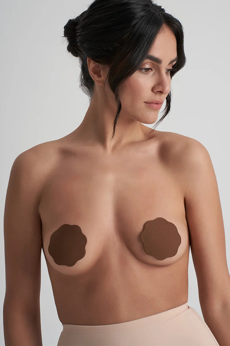 The ByeBra Fabric Nipple Covers in Brown provide natural coverage for deeper skin tones.