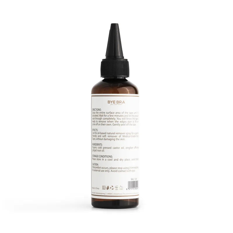 The ByeBra Adhesive Remover ensures gentle, residue-free removal of body tape.