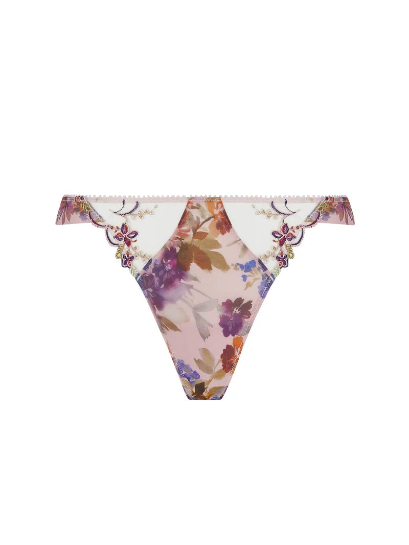 A seductive embroidered thong featuring delicate winter-rose motifs with an alluring minimal cut.