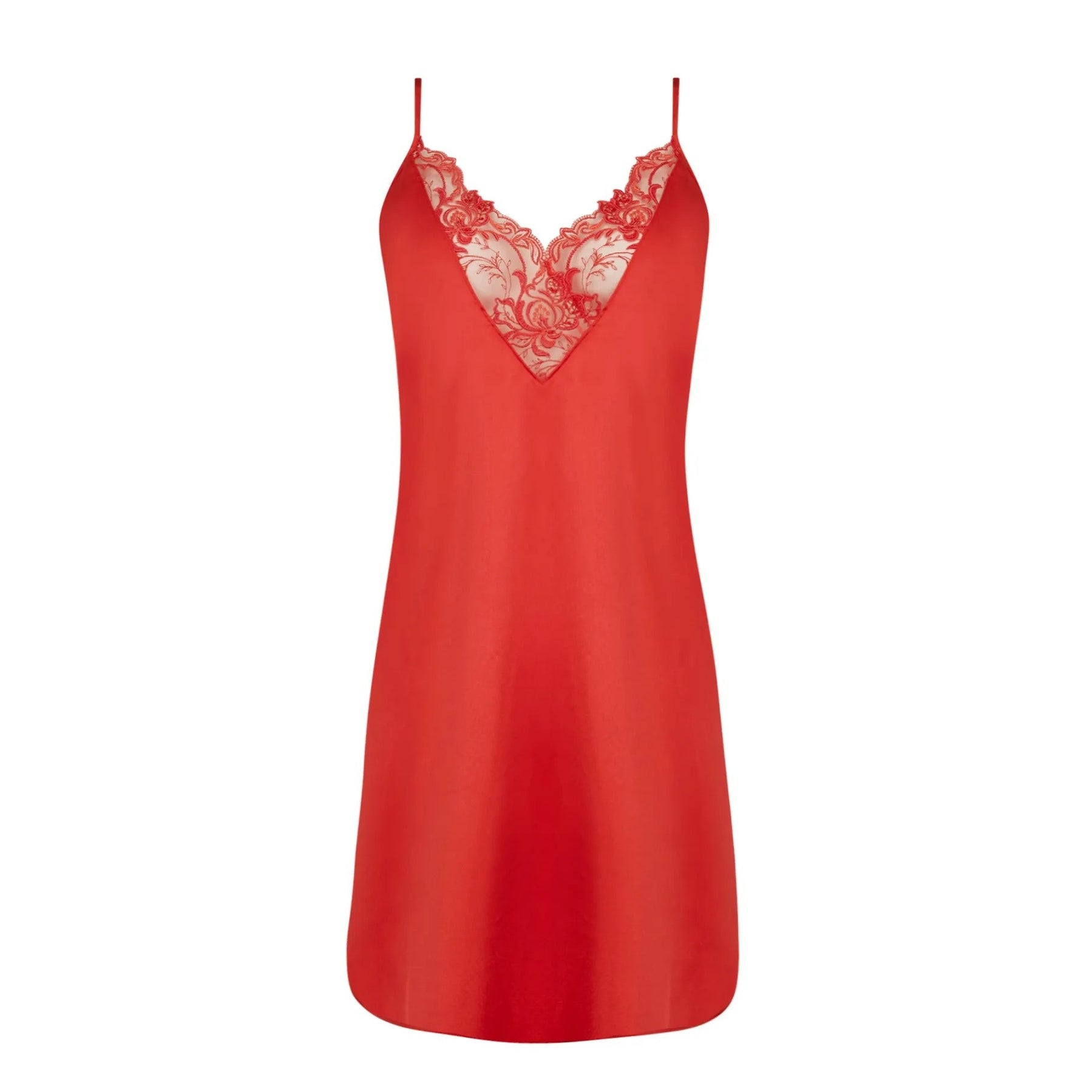 - Features a v-shaped cleavage revealing scalloped multithreaded embroidery