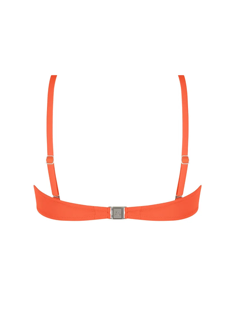 A vibrant strapless bikini top for confident summer wear.