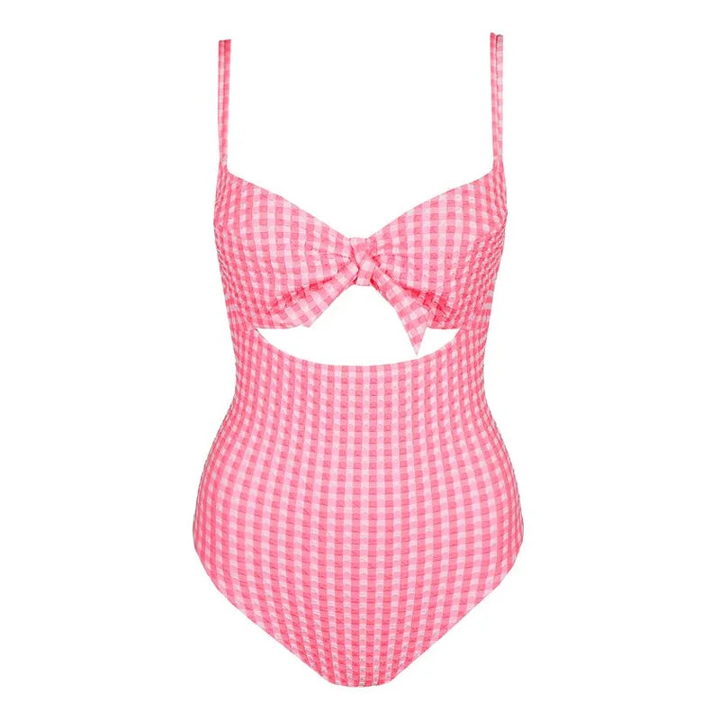 A full cup swimsuit in Rose Gingham, designed for supportive shaping with feminine summer elegance.