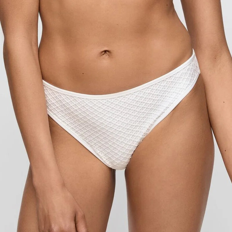 Chic Rio bikini briefs in Elfin White, offering flattering coverage with refined summer elegance.