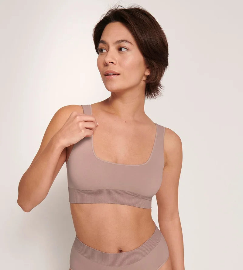 A soft Foggy Mauve top infused with aloe vera treatment for long-lasting skin-soothing comfort.