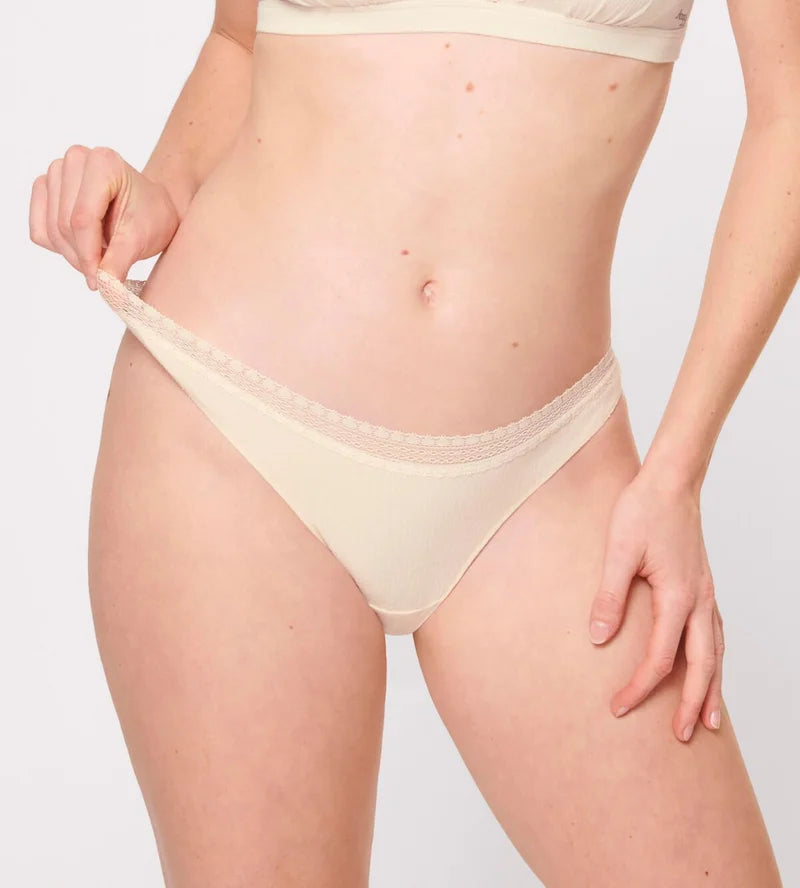 This style provides light, flexible comfort with a cheeky back shape that remains smooth under clothing. Ideal for everyday wear with a subtle earthy tone.