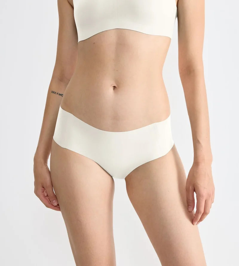 A silky-soft hipster brief in Silk White offering a smooth, second-skin feel with seamless coverage.
