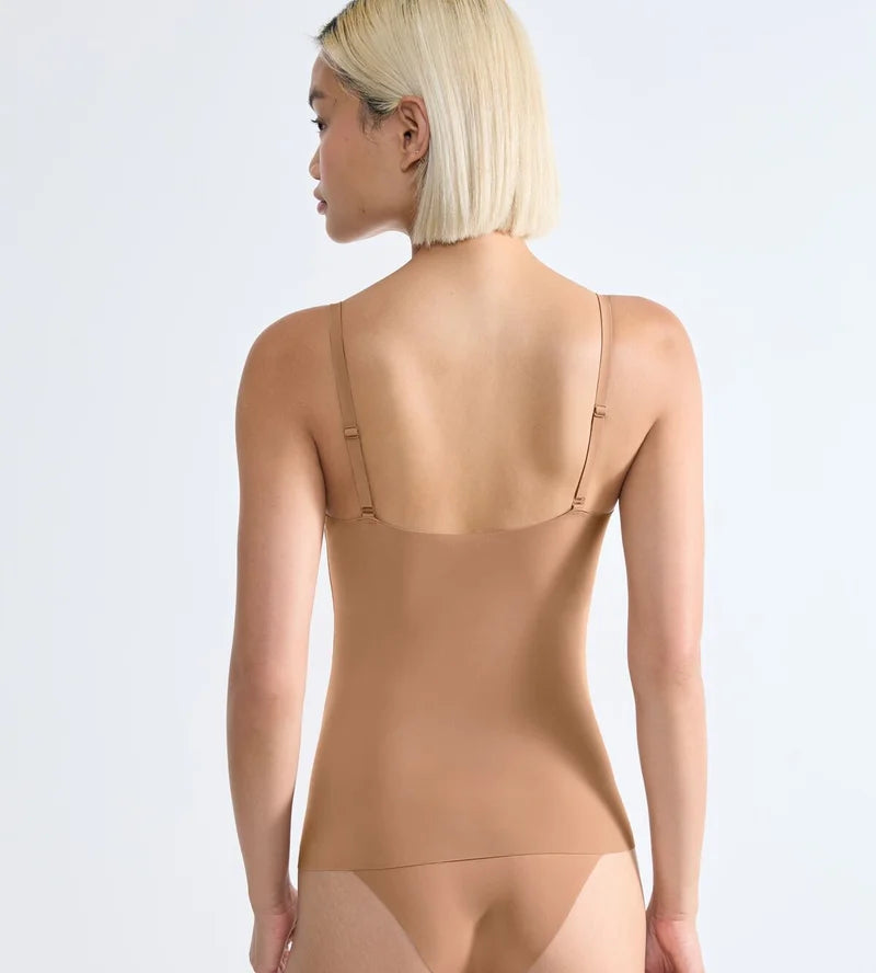 A warm-toned spaghetti top offering a barely-there feel with stretch microfibre and smooth finishes.