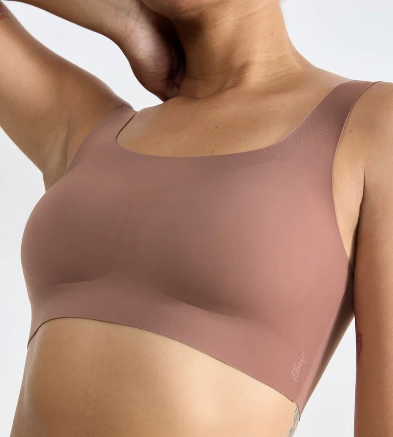This top provides soft, unrestricted movement with a clean, invisible outline under clothing. The Cacao shade adds a modern neutral finish suitable for everyday and leisurewear.