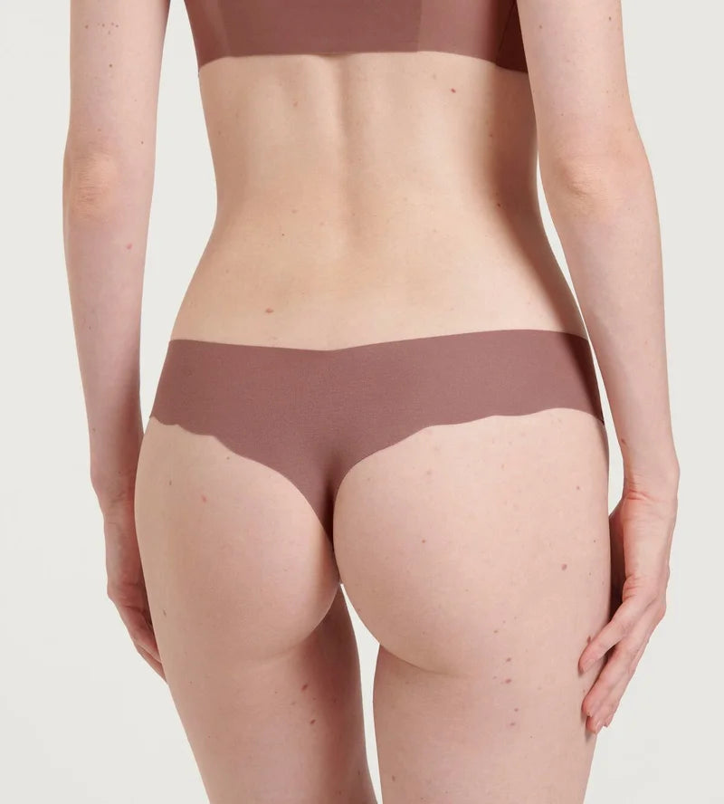 A rich Cacao low-rise hipstring offering smooth, seam-free wear with natural softness.
