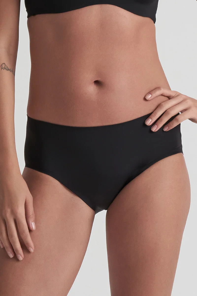 Designed for daily cycle wear, this hipster brief combines discreet laminated absorbent technology with a soft, breathable microfibre feel. The fabric sits comfortably against the skin, offering a smooth, flexible fit that moves naturally with the body. Medium-flow protection ensures reliable coverage without bulk, while the hipster silhouette provides balanced coverage across the hips for a flattering, modern shape. Seamless edges maintain invisibility under clothing, making it ideal for fitted outfits. Both practical and refined, it is ideal for workdays, travel, active lifestyles and everyday period support.