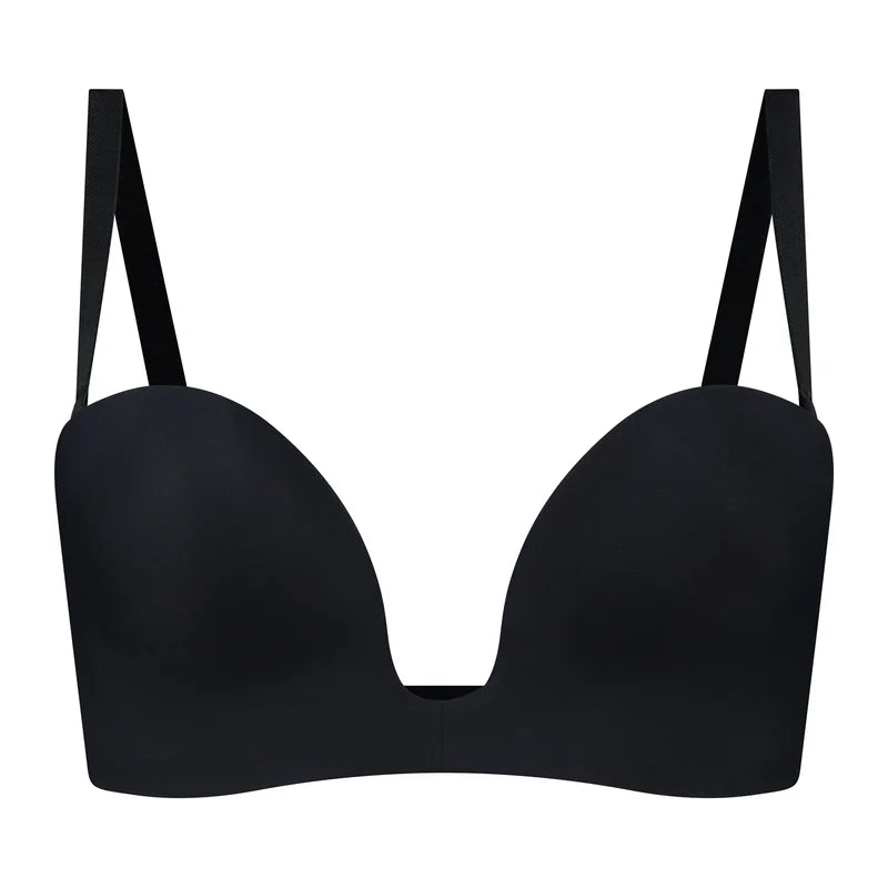 The ByeBra Deep Plunge Strapless Bra in Black offers sleek shaping with invisible support and a refined, low-cut silhouette.