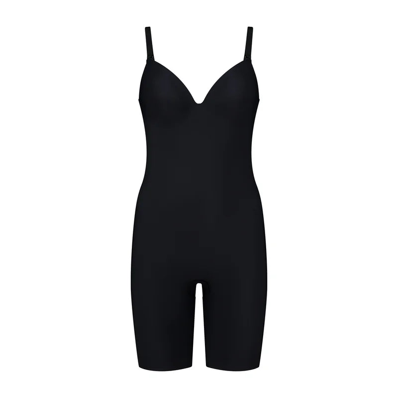 The ByeBra Low Back Bodysuit Short in Black offers sleek shaping with a smooth, sculpted silhouette.