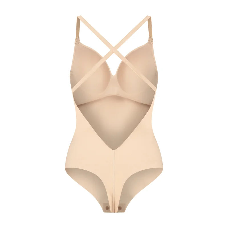 The ByeBra Low Back Bodysuit Thong in Beige delivers invisible shaping with a sleek, line-free finish.