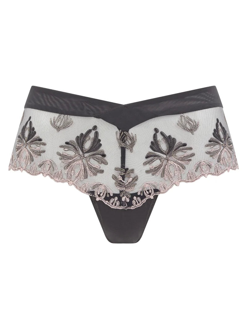 A sophisticated shorty brief blending intricate embroidery with comfortable coverage for a smooth, flattering finish.