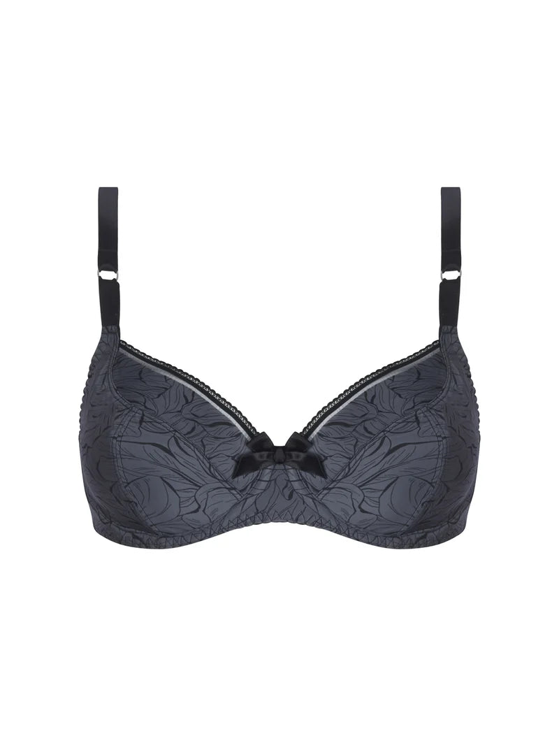 A chic balconette in Gris Souris combining supportive lift with modern graphic lace.