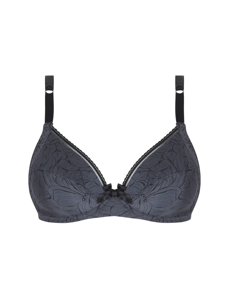 A supportive full cup offering excellent structure and stylish lace panels in soft grey tones.