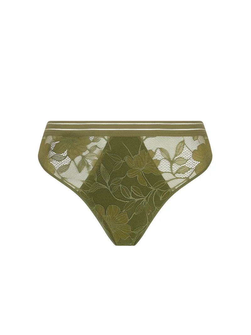 A tonal version of the classic lace brief, combining breathable fabrics with refined style in a muted green shade.