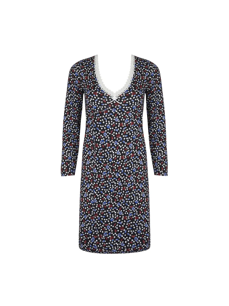 A short, easy-wear nighty in Semis Liberty featuring a delicate winter-floral print and soft drape.
