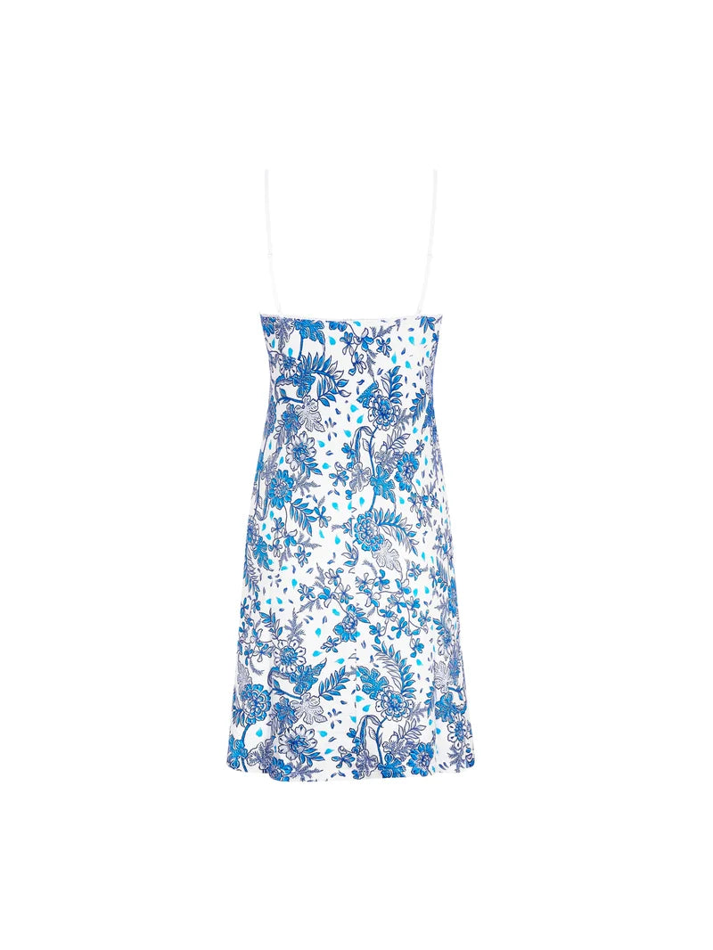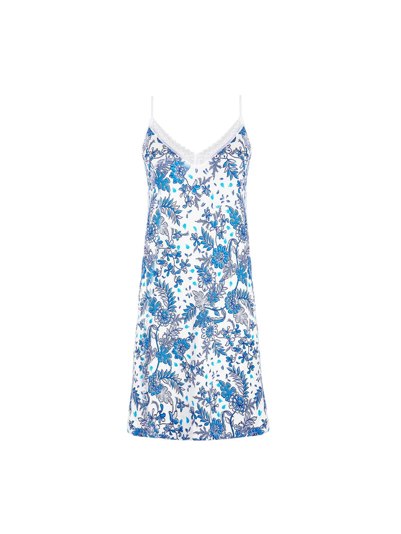 A shorter, flirtier slip with the same airy print and delicate lace finishes.