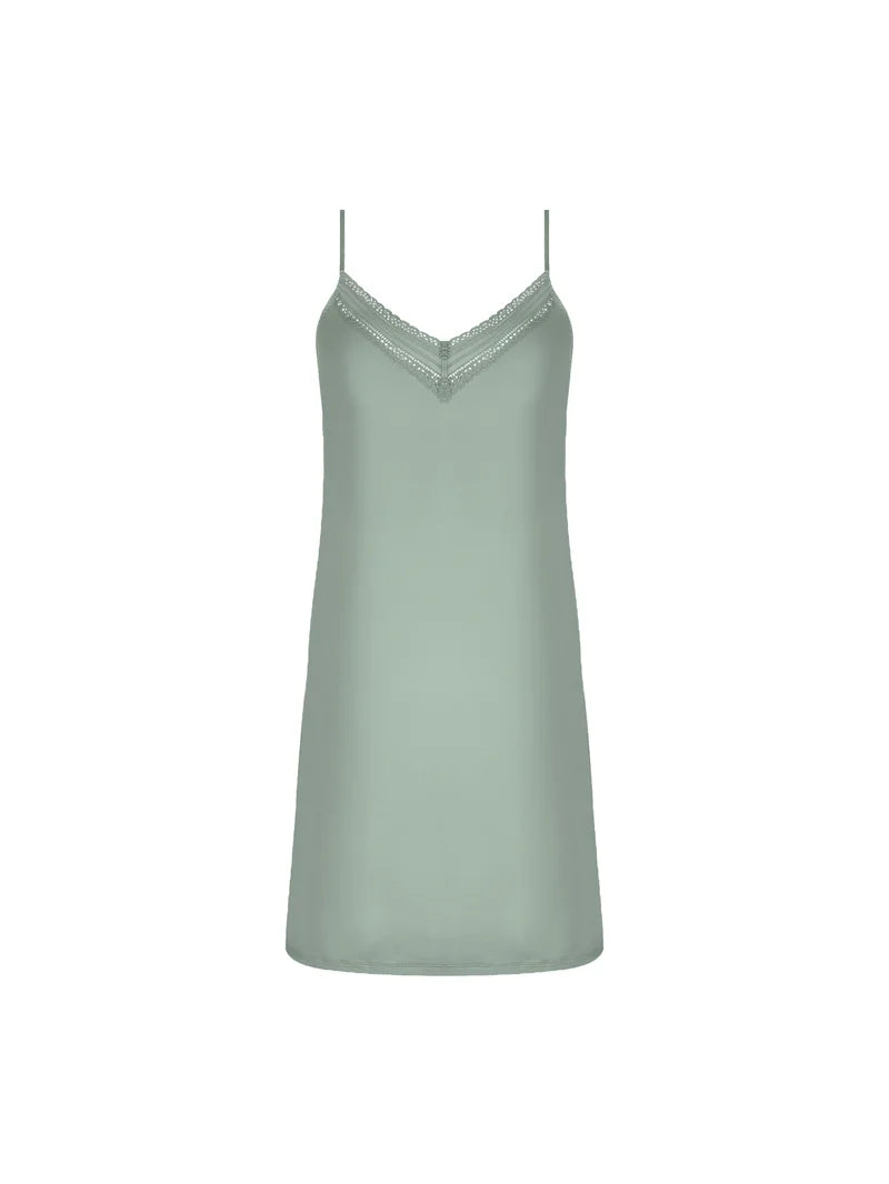 A fresh mint modal chemise combining softness and colour under ambient light.