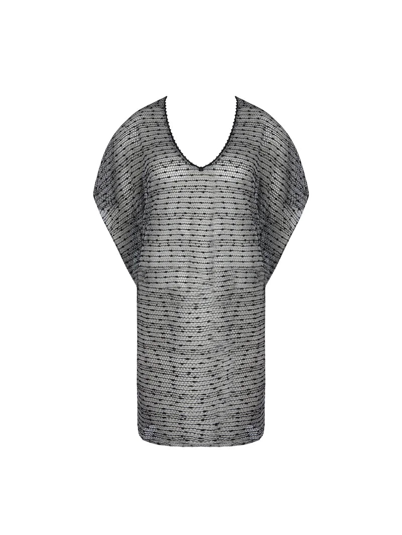 A lightweight mesh poncho with fluid movement.