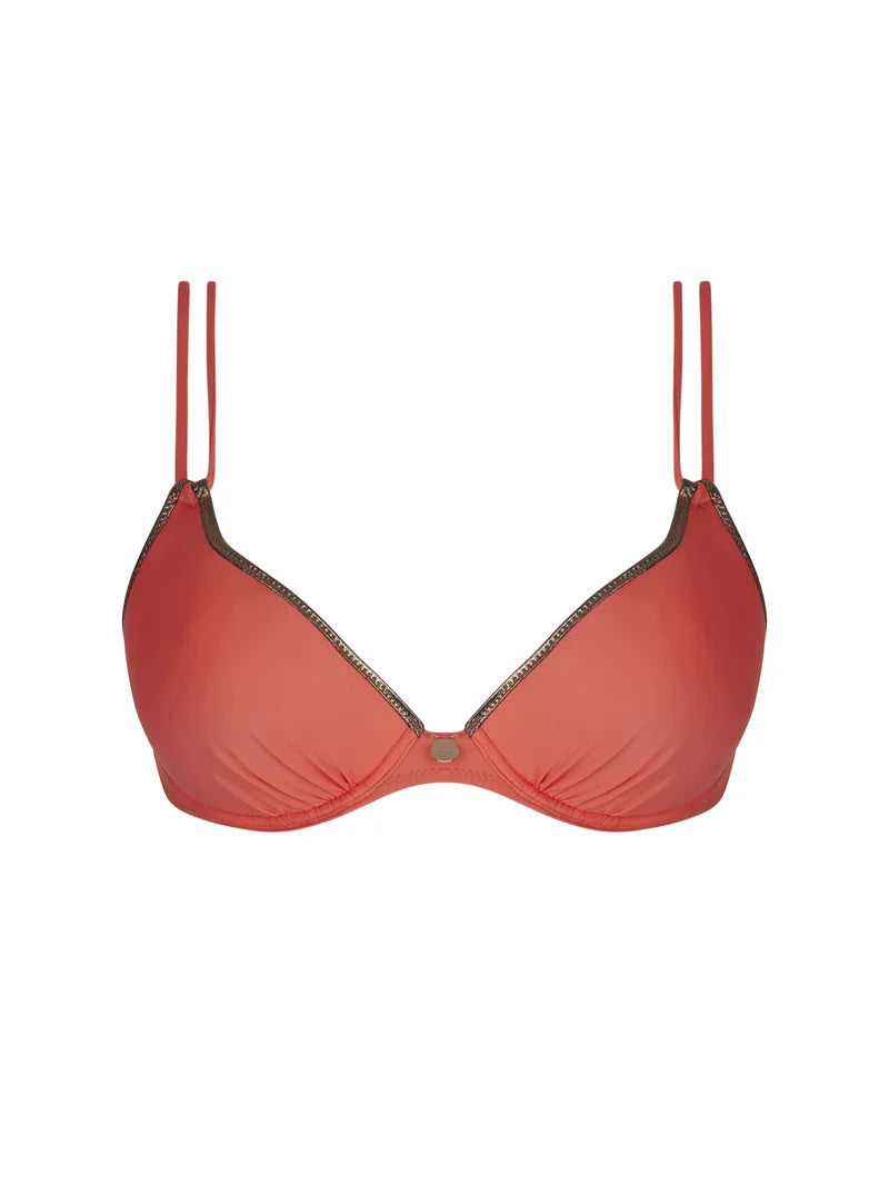 A shaping bikini top with smooth structure and lift.