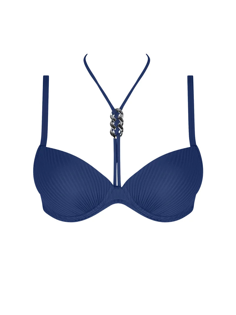 A supportive padded bikini top with refined nautical lines.