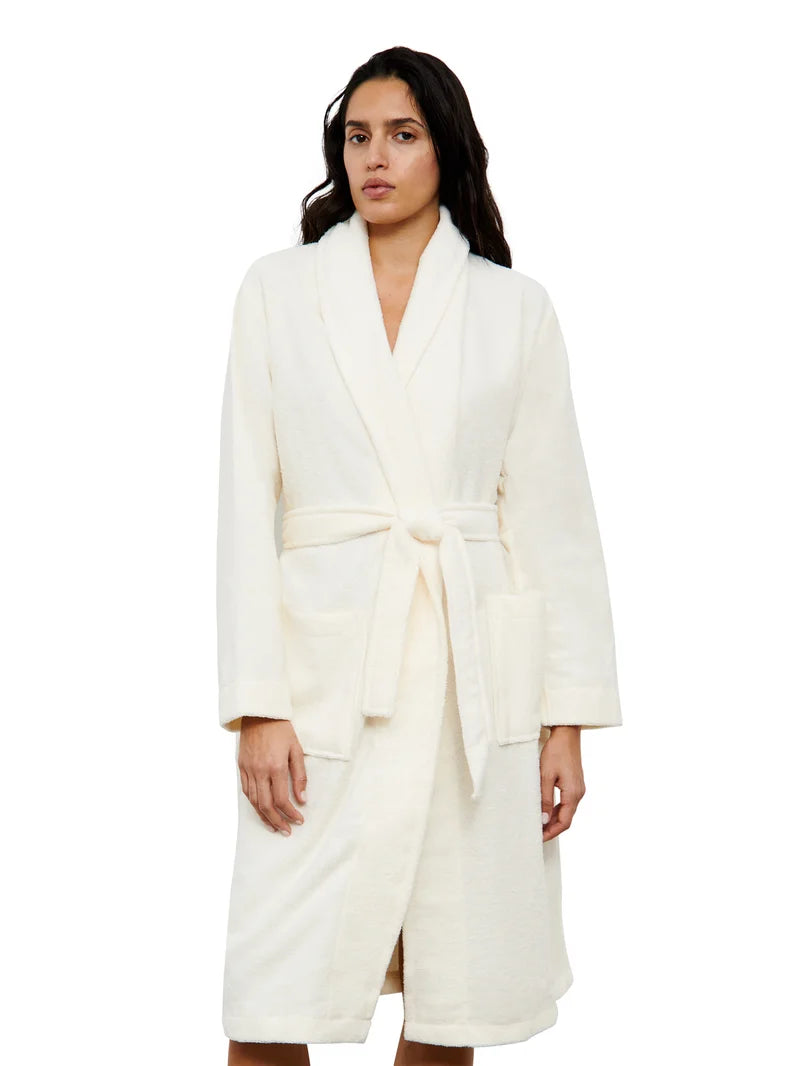 The Comfy Robe in Milk is a classic piece for cosy moments. Made from ultra-soft fleece fabric, it offers warmth without weight and drapes beautifully over sleepwear. The tie belt allows for adjustable comfort, while the ivory tone gives a serene, spa-inspired aesthetic. Ideal for lazy mornings, pamper evenings or relaxing after a long day.