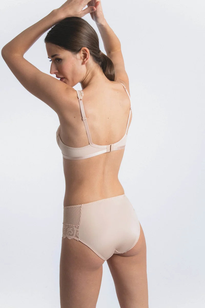 A soft-cup lace bra offering gentle support and natural shaping in a romantic Smoky Pink shade.