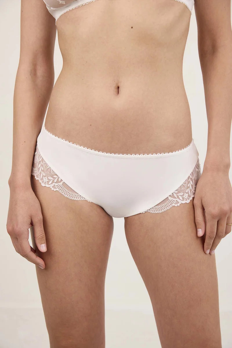 An elegant embroidered brief in Lily offering classic coverage and delicate floral detail.