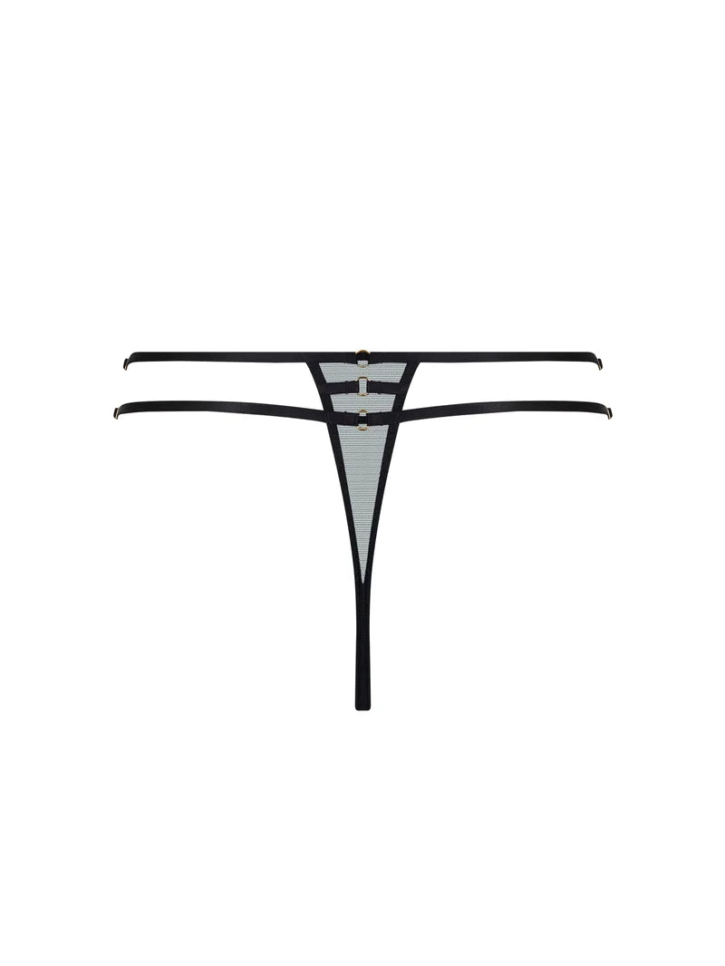 A provocative thong with extended lace and tulle detailing designed to enhance and intrigue.