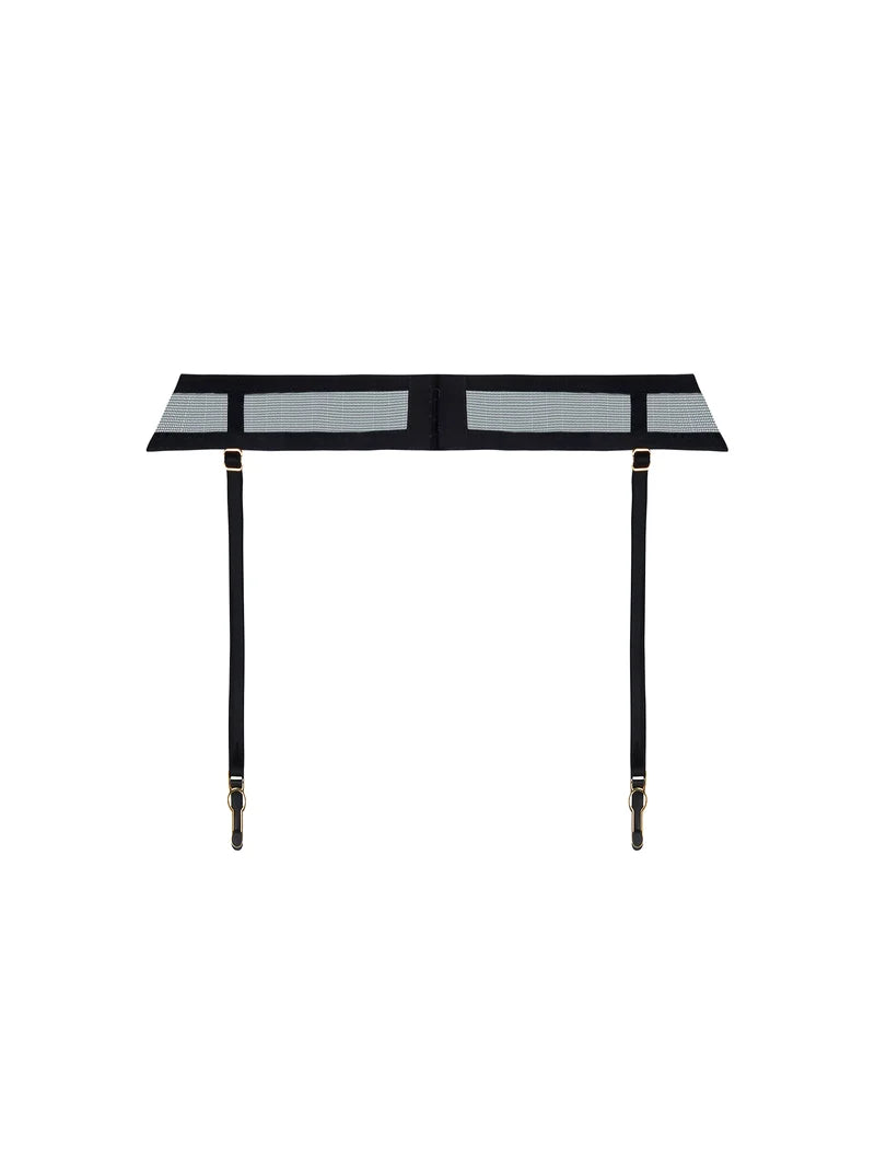 A luxurious suspender belt with scalloped lace, sheer tulle panels and adjustable garters for seductive structure.