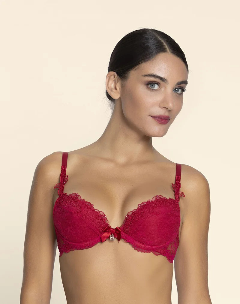 The Lise Charmel Soir De Venise Push Up Bra in Rouge Venise celebrates sensual glamour with bold shaping.