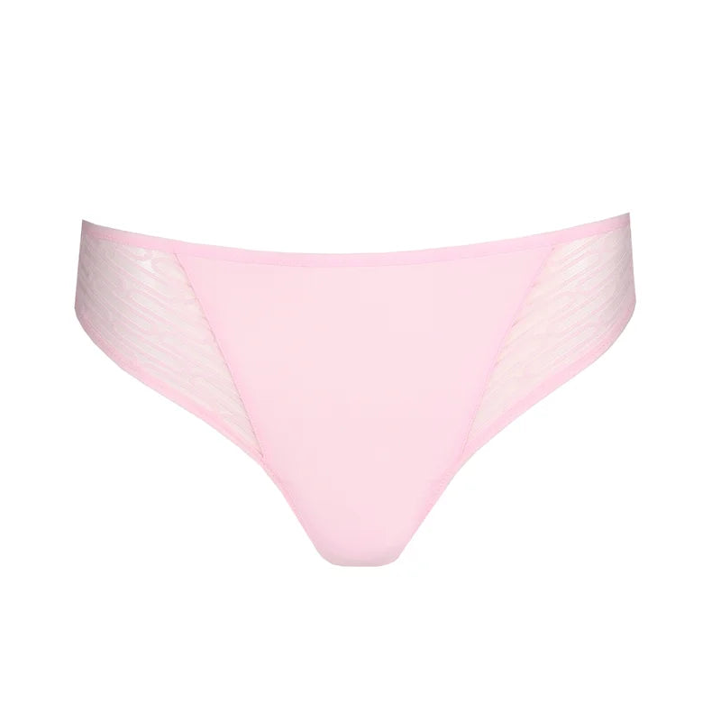 A delicate thong in soft Fifties Pink, adorned with airy embroidery for a barely-there finish.