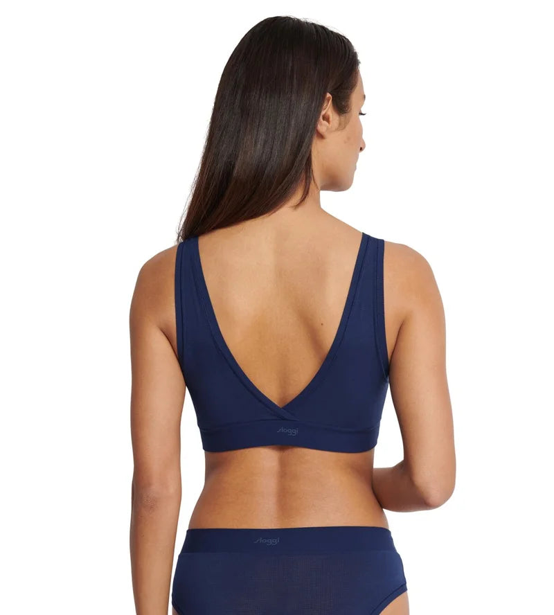 A True Navy bralette offering wire-free ease with smooth adaptive stretch for a personalised fit.