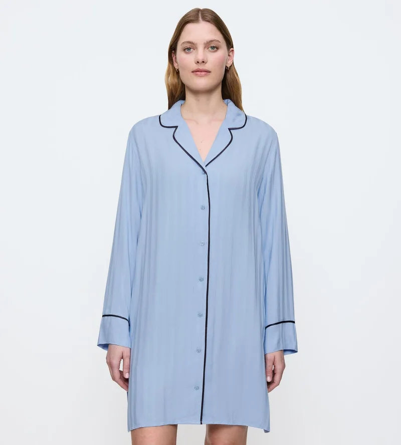 A relaxed Ice-toned nightdress combining soft lace accents with effortless comfort.