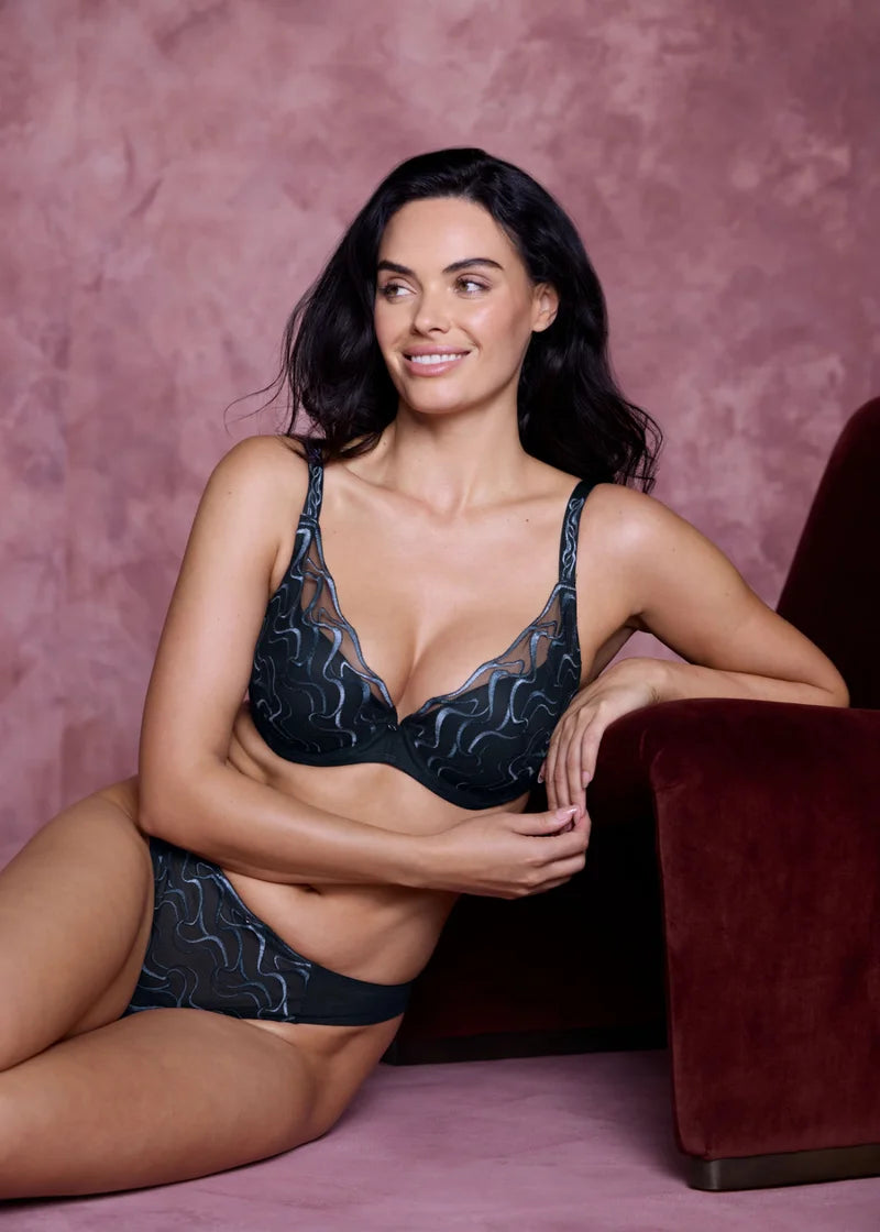 The Mayumi Tanga in Midnight offers a barely-there feel with refined detailing. Sheer embroidered panels frame the hips for an alluring, feminine look. The low-rise fit ensures smooth, invisible wear under clothing. Ideal for pairing with the Mayumi Underwired Bra for coordinated sophistication.